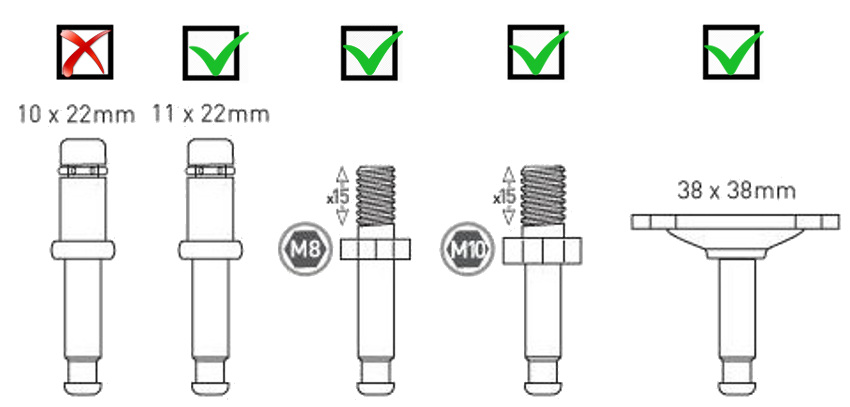 • Uitsluitend stiftmaat 11 mm, M8, M10, 38x38mm
